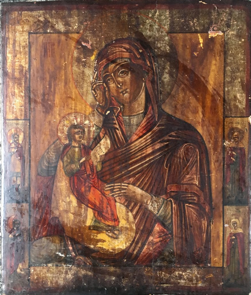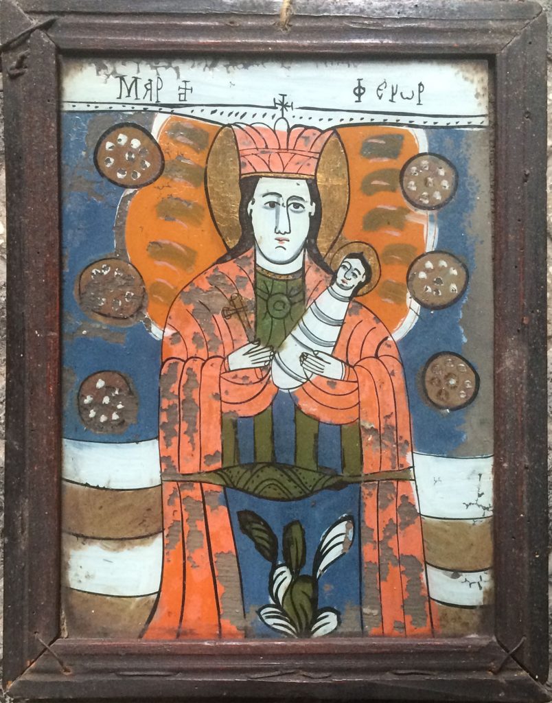 Read More Icoana pe sticla sec XIX „Fecioara Maria cu Pruncul”. Dim. aprox: 28×23 cm