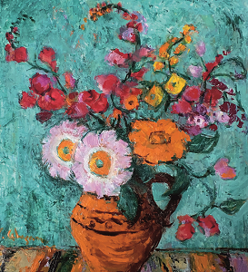 Autor: Stavru Tarasov (n. 1883 – d. 1961) „Flori” datat: 1959 Tehnica: ulei Semnat dreapta jos cu rosu Lucrarea este inramata