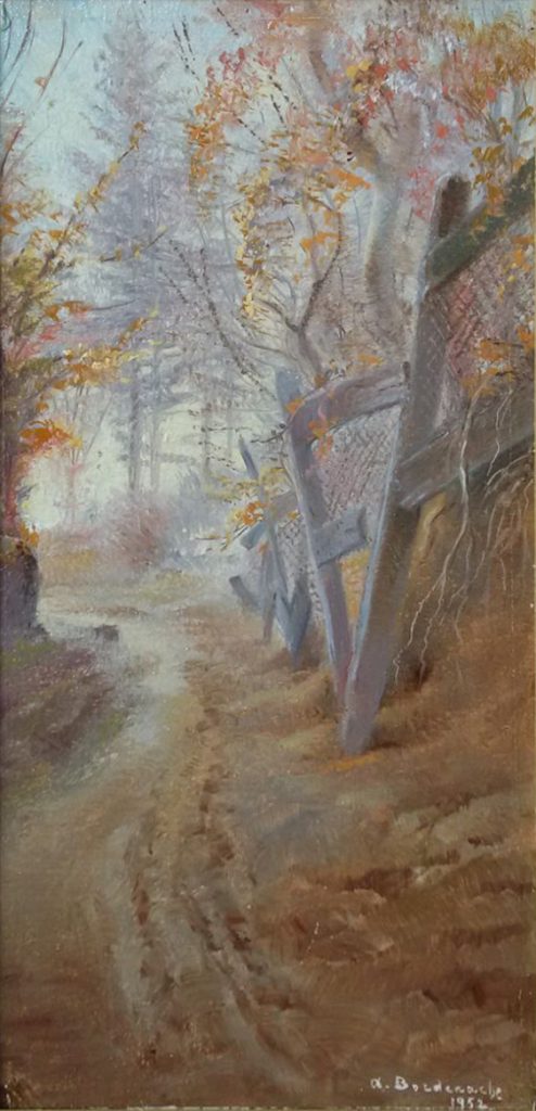 Read More Autor: Aurel BORDENACHE(1902-1987) „Peisaj din Codlea”. Semnat si datat dreapta jos 1952 Tehnica: ulei pe placaj Lucrarea este inramata