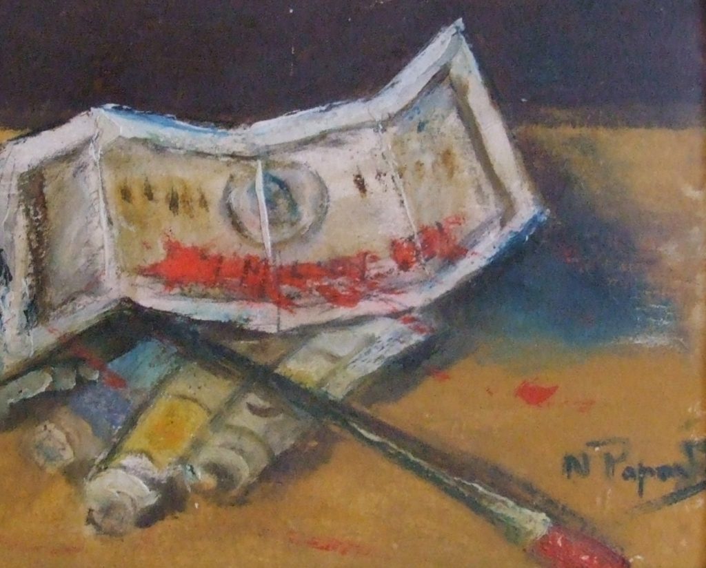 Read More Autor: Nicolae (Nen) Papadat „Natura statica cu bacnota”. semnat stanga jos Tehnica: ulei pe carton Dimensiuni lucrare: 42x50cm Lucrarea este inramata