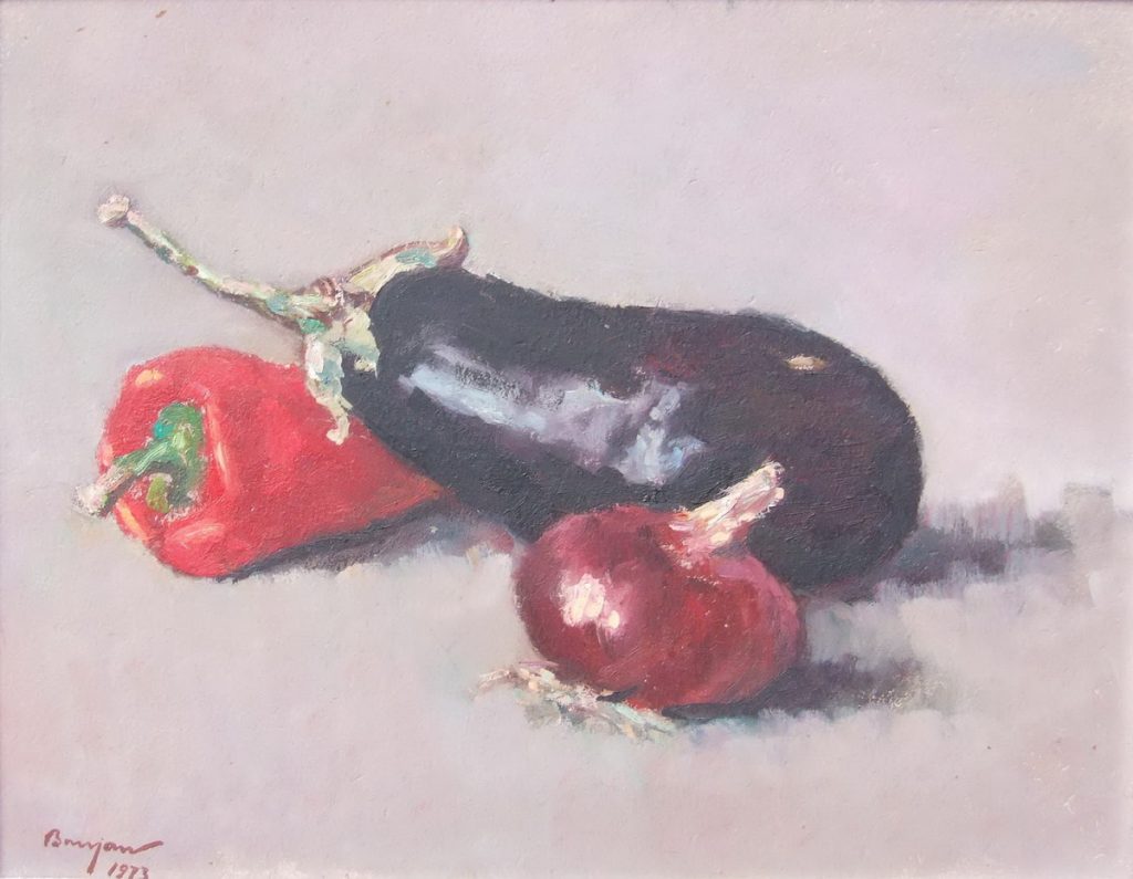 Read More Autor: Iacob BRUJAN(1898-1984) „Natura statica”. semnat stang jos Tehnica: ulei pe mucava Dimensiuni lucrare: 35×45 cm Lucrarea este inramata – rama originala